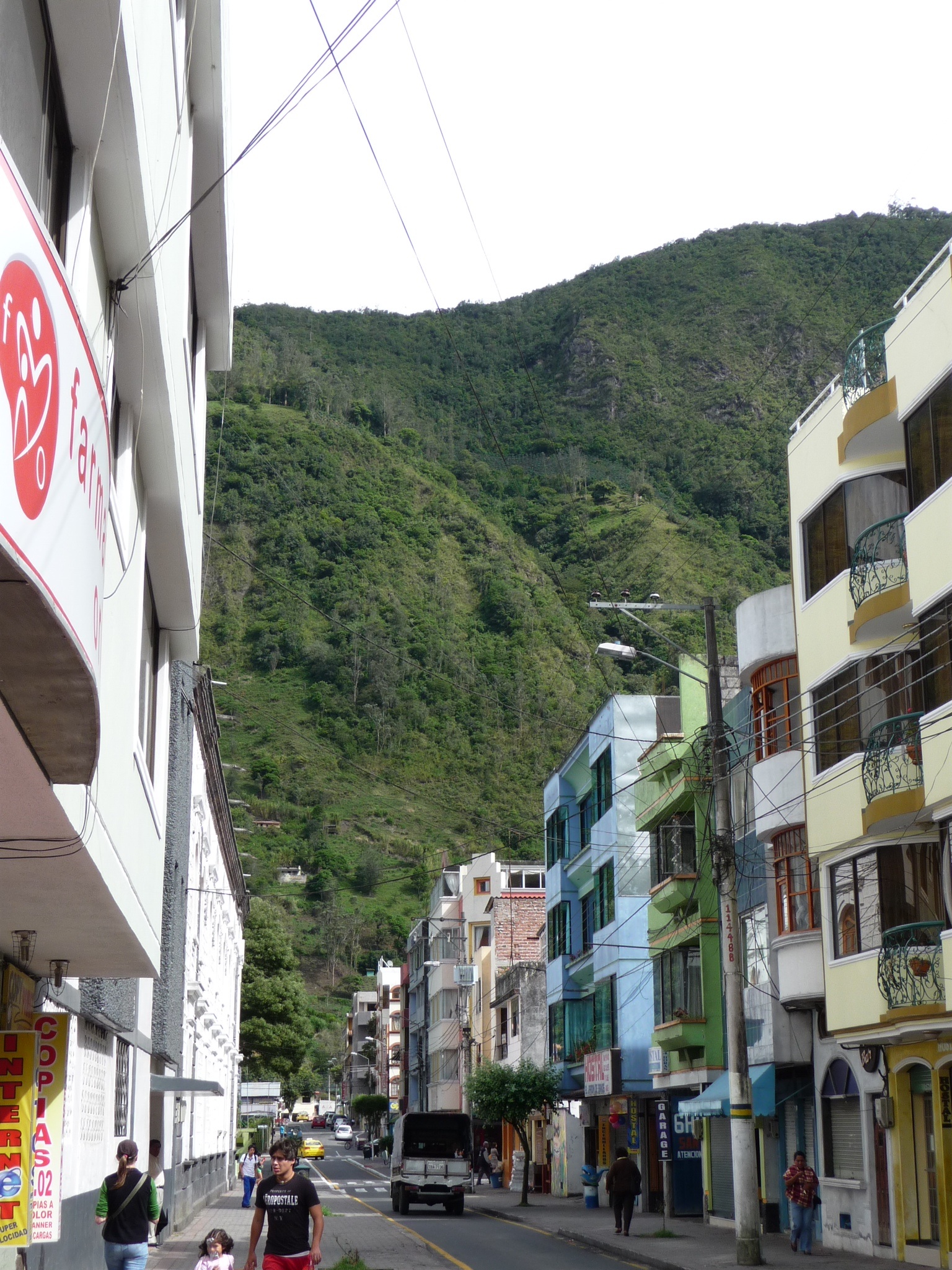 It was then off to Baños; no, not the toilet – the place! Banos is famed for its active volcano, waterfalls, thermal springs and spas….my kind of town! It was small with the neo-gothic style church, Church of the Virgin of the Holy Water – a reference to apparent sightings of her at the nearby waterfall – providing the central point of reference. It is claimed that the Church is the only building to have survived the volcano eruptions that have flattened the rest of the town. The inside of the Church displayed paintings illustrating this ‘miracle’.