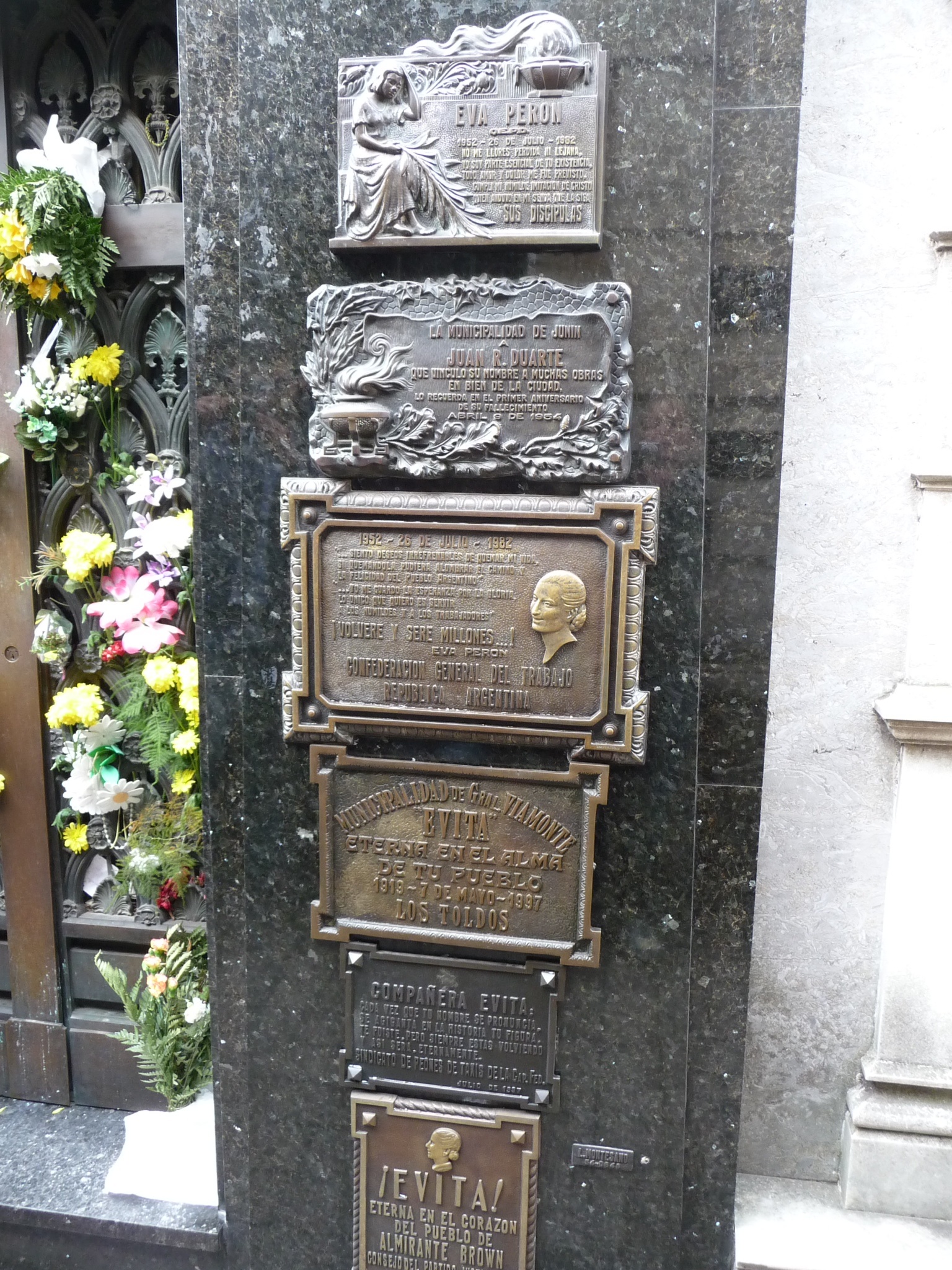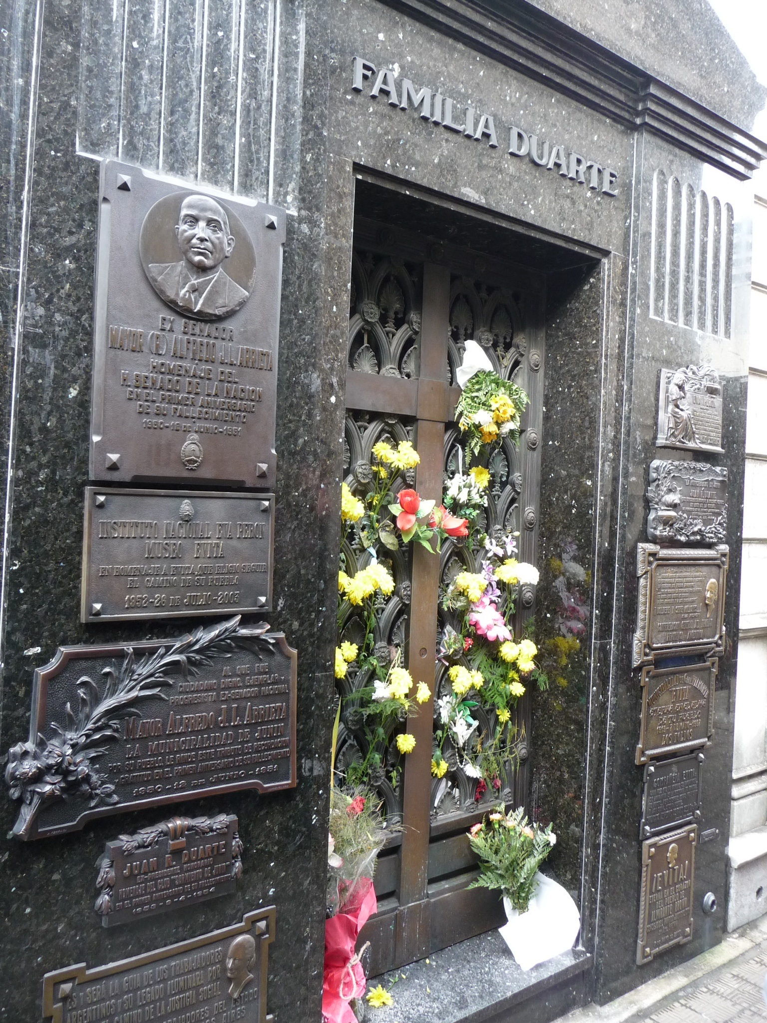 Then of course there was the crypt containing the remains of Eva Perón (Duarte), the reason most people visit the cementerio. The ‘shrine’ is very low key (some would say appropriate given her socialist views in life) and has only been her home since 1971 (her death being in 1952) because of political manoeuvrings to keep her body away from Argentinians who might otherwise continue the Peronist ideals. She even managed to be buried under another name in Italy for a while. She now rests in her family’s plot, who were apparently not great fans of her husband.