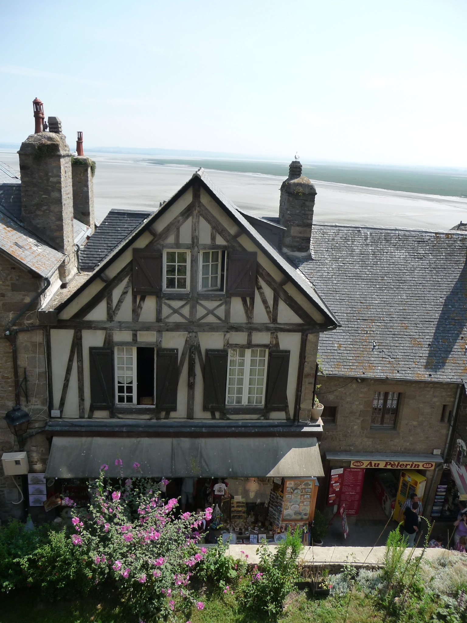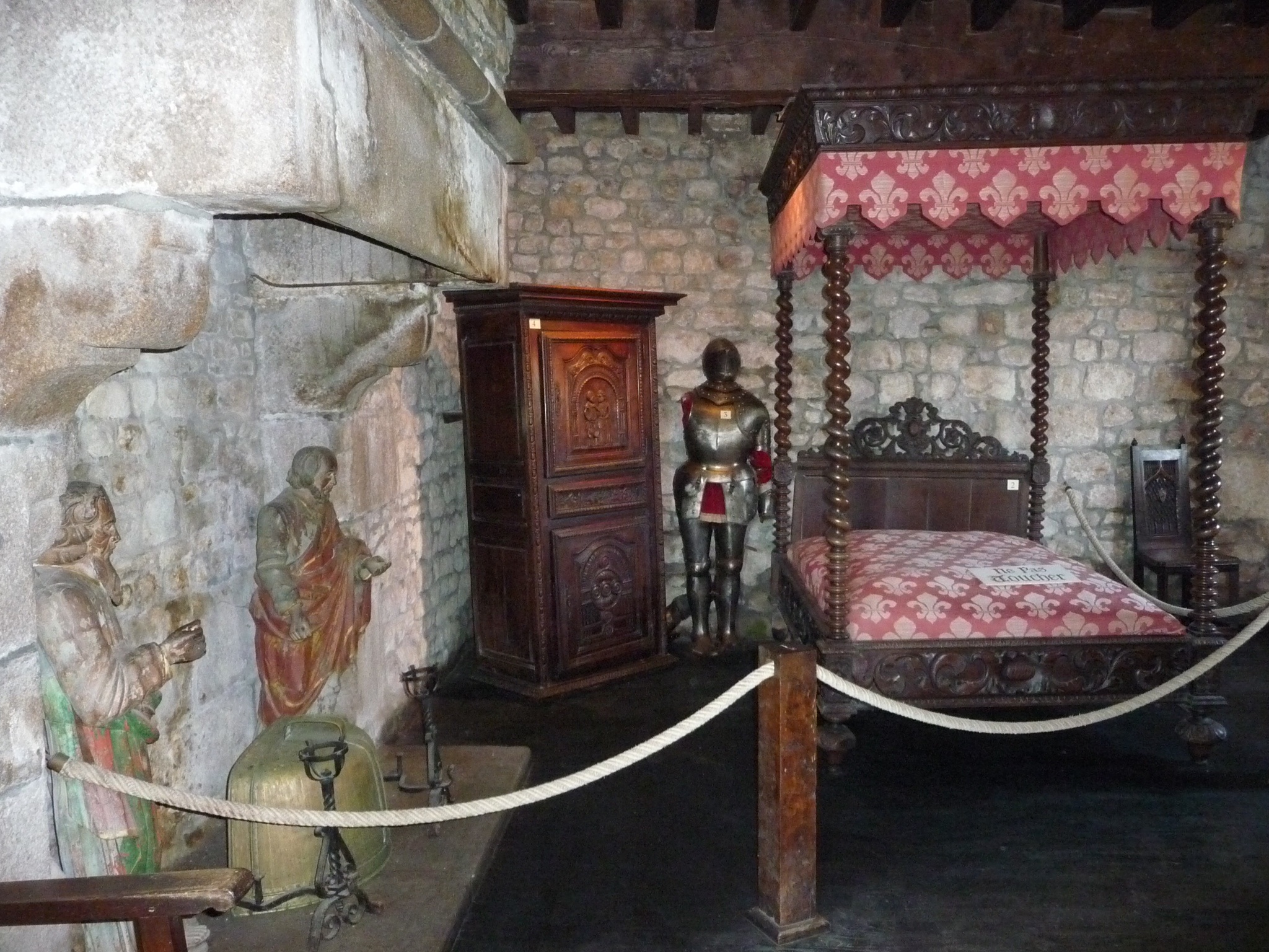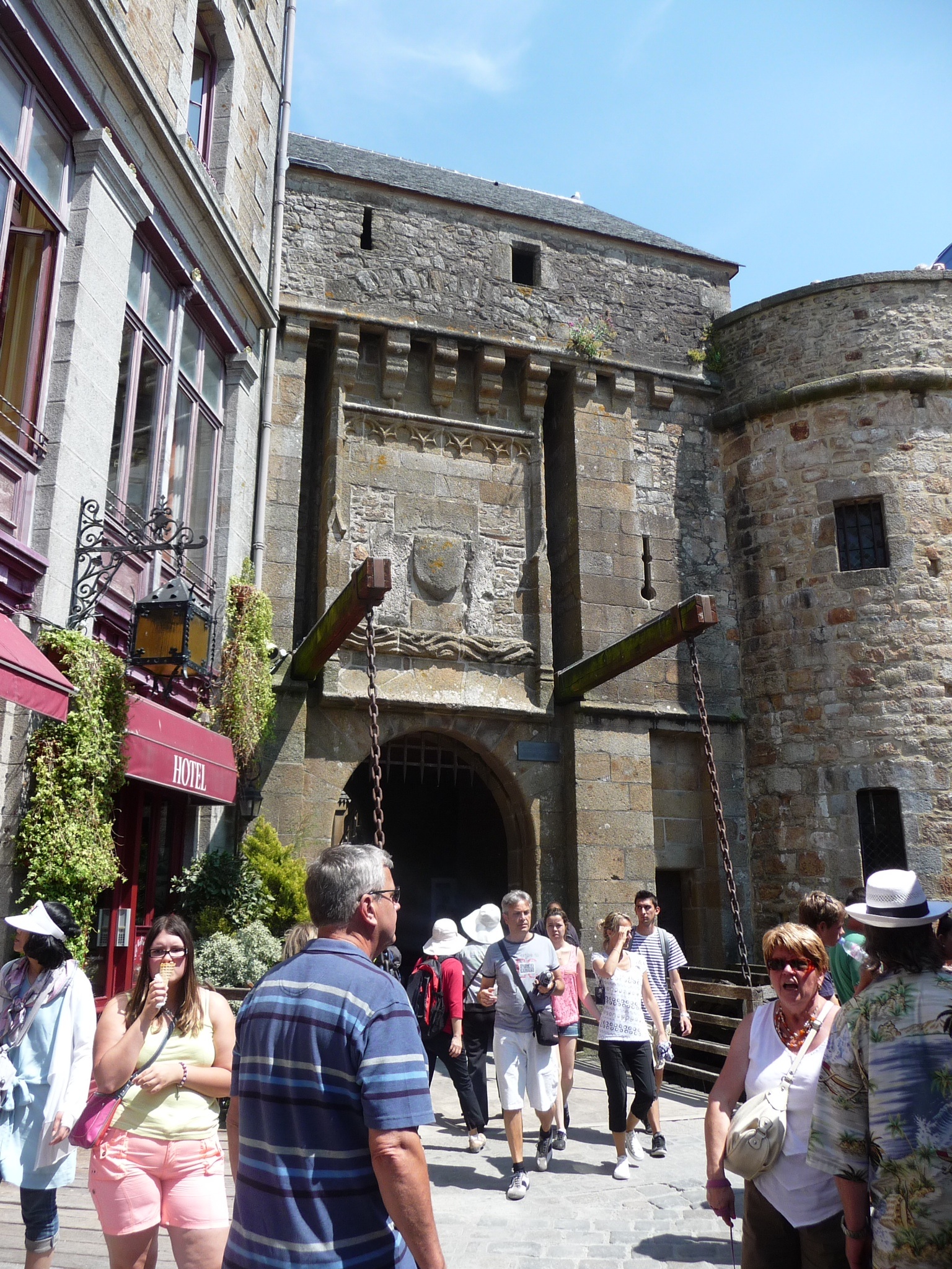 There was no fear of fog today, we had arrived at Mont St Michel on a beautiful sunny day. We went our own ways for the visit knowing that we’d each need information in our own languages. I picked up a museum package and started off at the home of Betrand du Guesclin, Knight from the 14th century, and his wife, Tiphaine de Raguenel, who was famous for reading the destiny ore world in the stars.