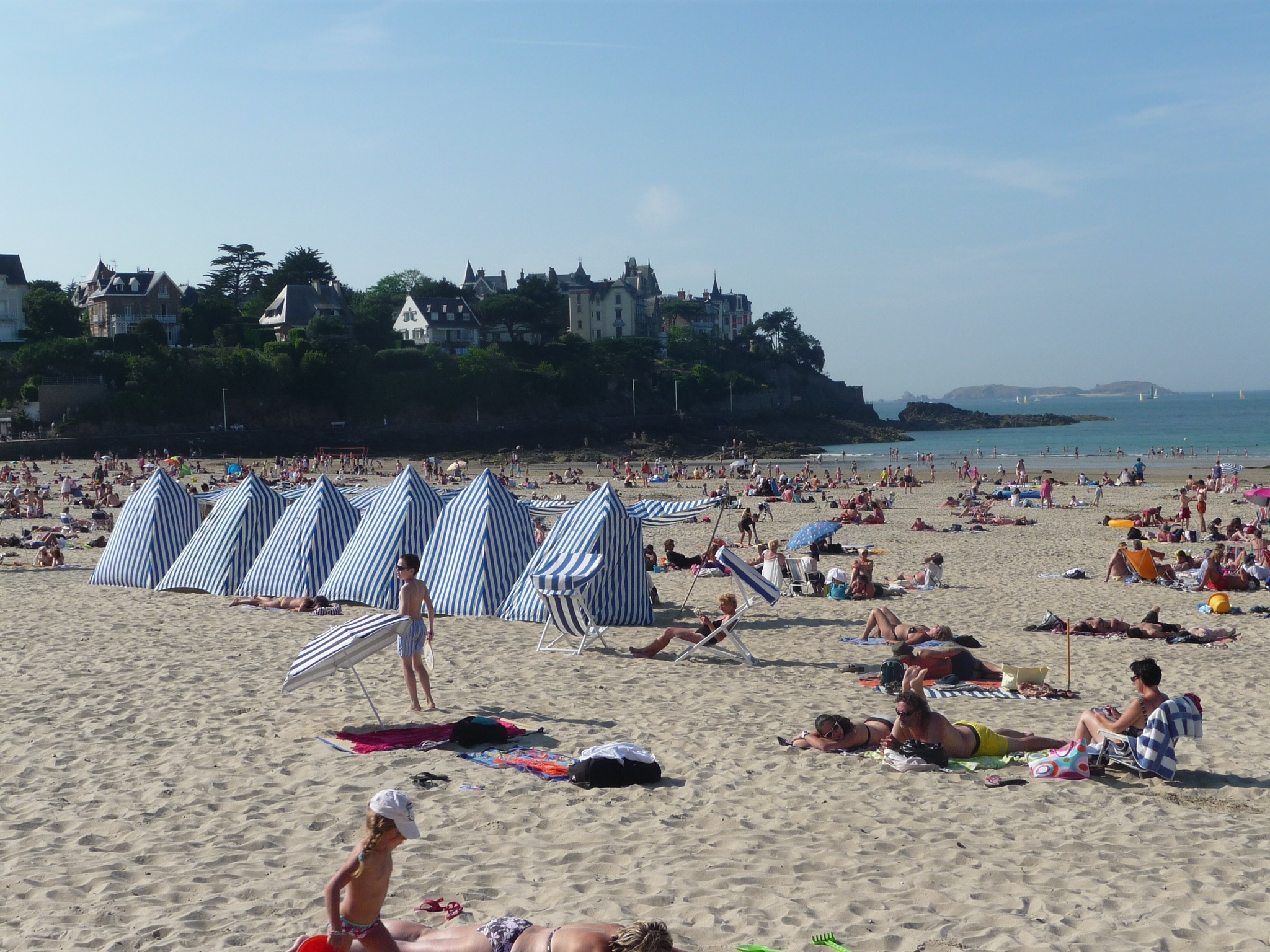 It was 7:30pm and there was no sign of the beach becoming deserted any time soon; in fact it seemed to be filling more in the time I was there. The stretch of beach between the water and line of beach tents clearly illustrated the big tides that are experienced here on the Brittany beaches.