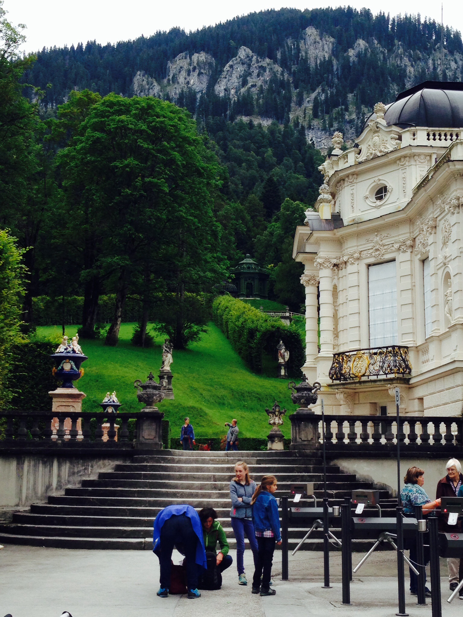 We then arrived at Linderhof (farm house near the Linder tree) Castle. The baroque style castle was built by King Ludwig the second, the King of Bavaria, in a style mimicking Versailles – apparently King Ludwig adored the 16th century French kings.