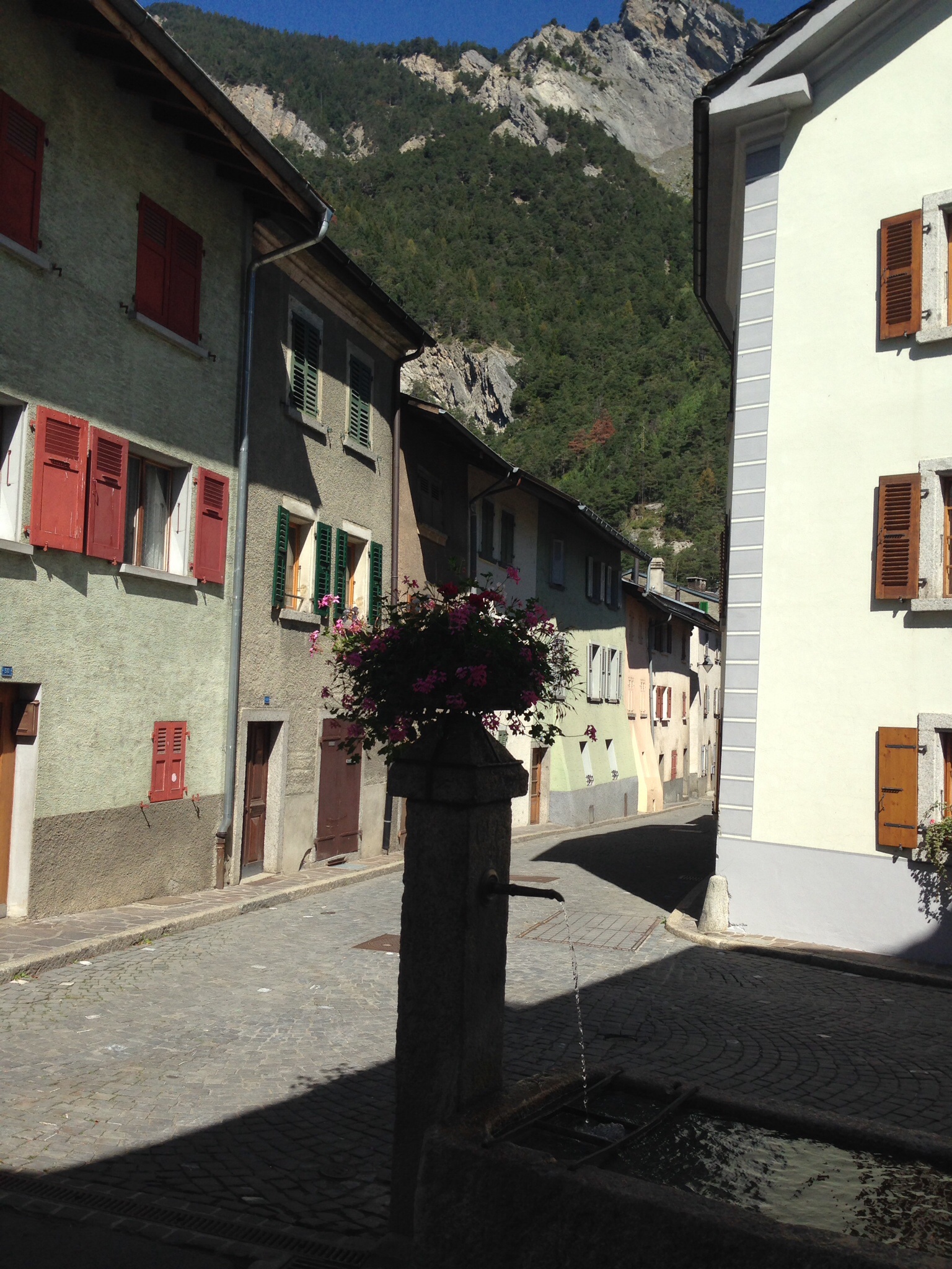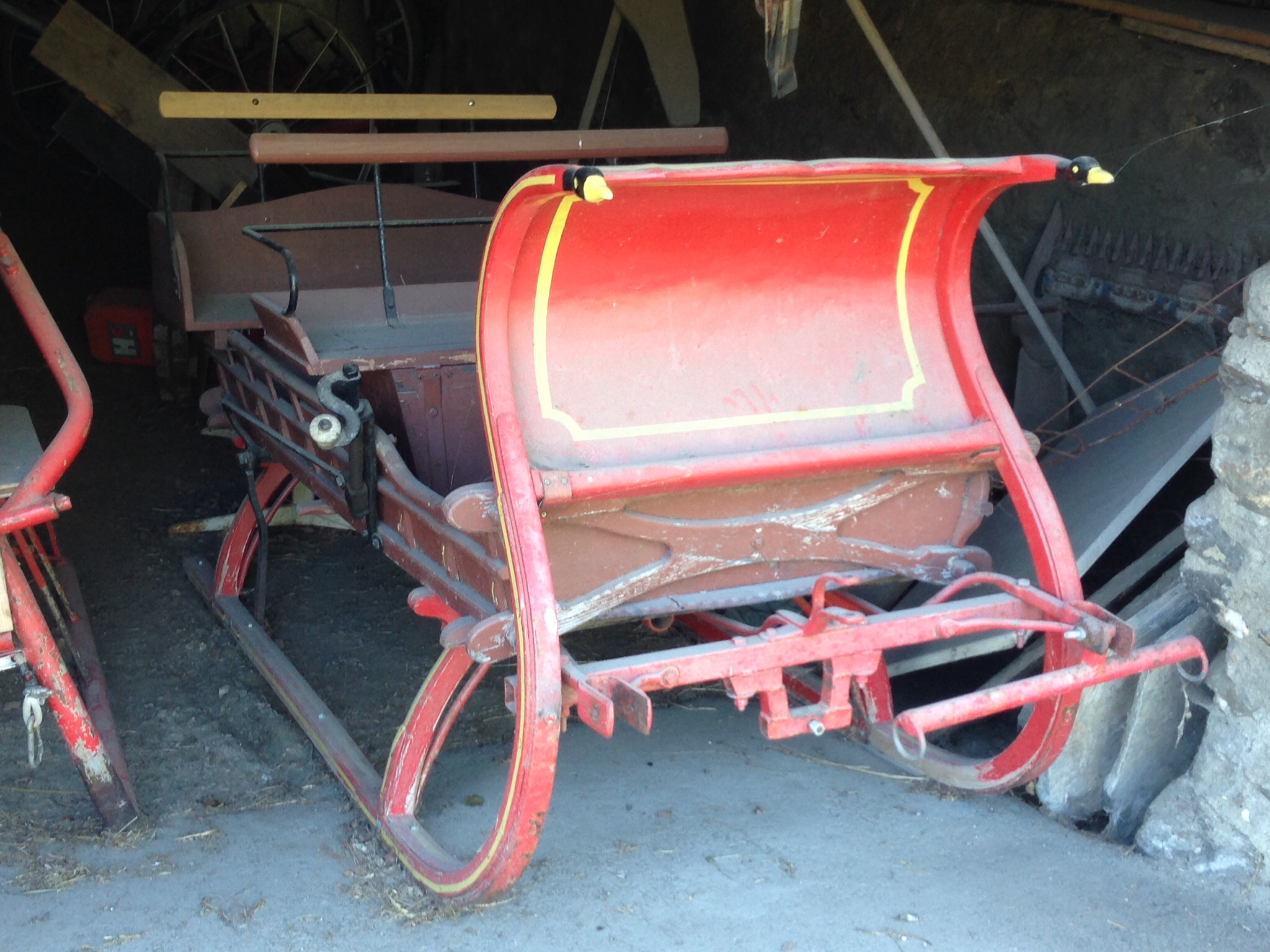 Trekked down to Sembrancher to see some wonderful barns built in the 17th century – Karyn was also able to make out the signs for the local bell maker. On our way out of town we passed a barn hiding Santa’s sleigh (obviously no great secret in those parts as it wasn’t terribly well hidden) and a tannery perched above the river.