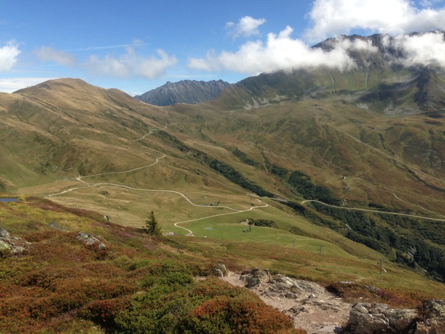 Down to the Col before another hike up the hill.
