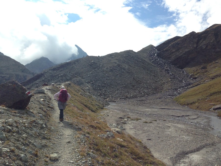 Karyn heading up onto the moraine.
